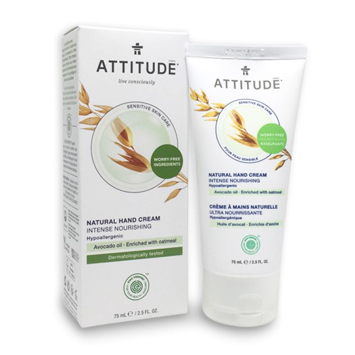 Give your hard-working hands the special attention they deserve with ATTITUDE's Intense Nourishing Natural Hand Cream. Carefully made for sensitive skin, this lightweight cream enriched with avocado oil and oatmeal extract will melt into your hands. Our hand cream, specially designed for dry skin, will penetrate quickly to moisturize, soothe and protect your delicate fingers without leaving them oily. EWG VERIFIED, hypoallergenic and dermatologically tested, you can use it daily, giving your hands an ultra-supple touch.