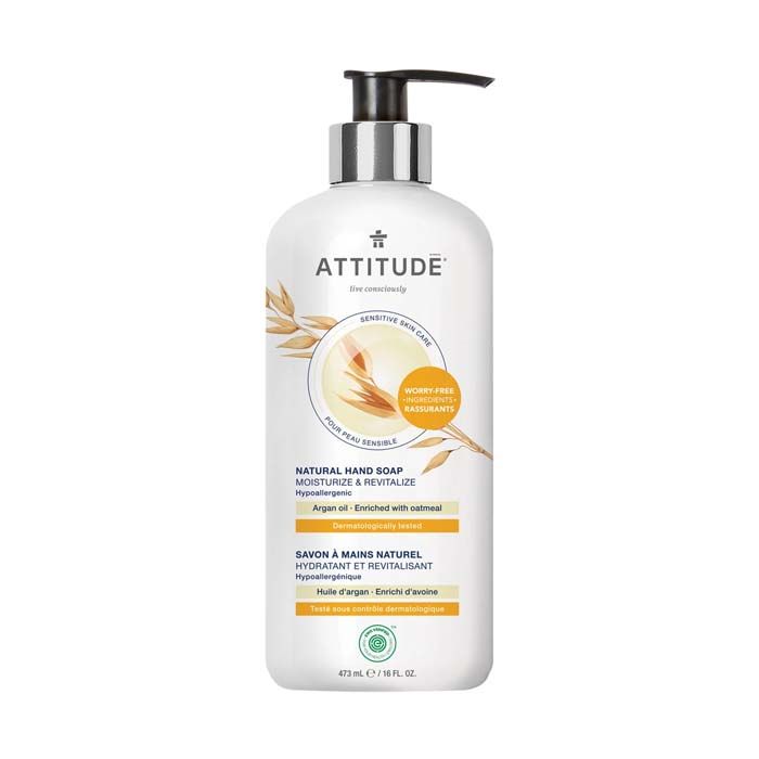 Your hands work hard every day, and they deserve to be pampered! Thanks to ATTITUDE's Moisturize & Revitalize Natural Hand Soap, you can rest assured that your hands..are in great hands! Harnessing the power of nature to gently cleanse away germs and impurities, this natural hand soap for sensitive skin is EWG VERIFIED, hypoallergenic and dermatologically tested. It uses ingredients such as oatmeal and argan oil, known for their nourishing, regenerative and antioxidant properties. Wash and soothe your delicate hands, worry-free!