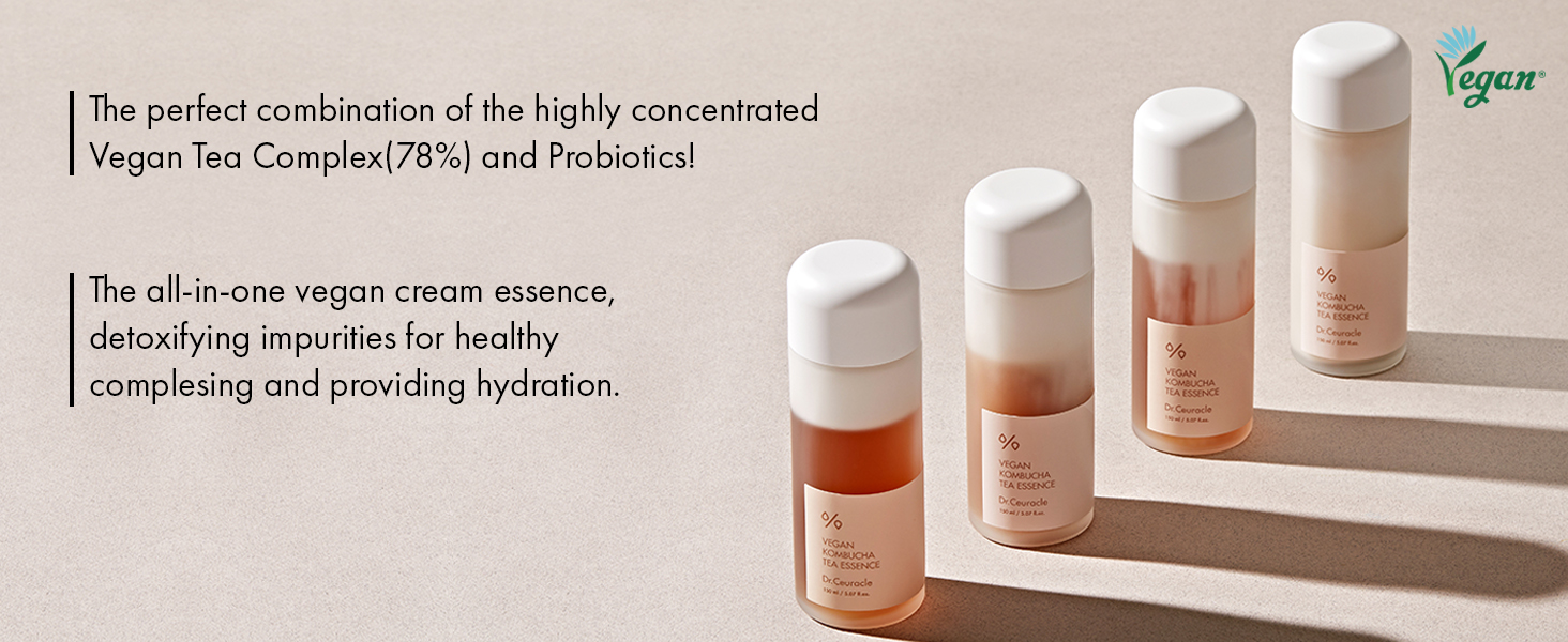 Dr. Ceuracle Vegan Kombucha Tea Essence, Probiotic Hydrating Detox for Glowing Skin, 150ml