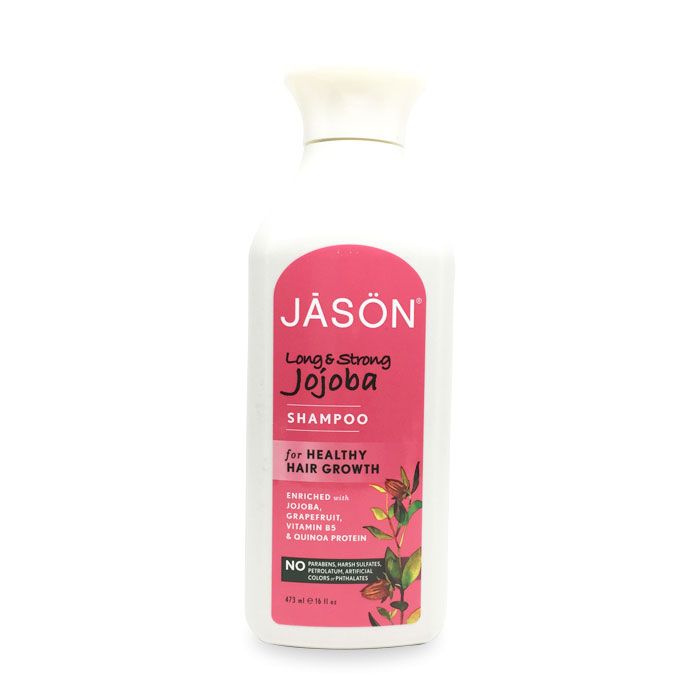JASONS® Long & Strong Jojoba Shampoo gently cleanses and fortifies weakened, hard-to-grow-long hair for maximum length without breakage. Jojoba Seed Oil replenishes lost moisture while antioxidant-rich Chamomilla Recutita and Grapefruit Extracts promote healthy hair growth. Yucca Filamentosa Extract and Vitamin B5 strengthen hair to help prevent breakage and split ends as Quinoa Protein improves elasticity. Nourished and refortified, your hair grows lustrously long and strong.