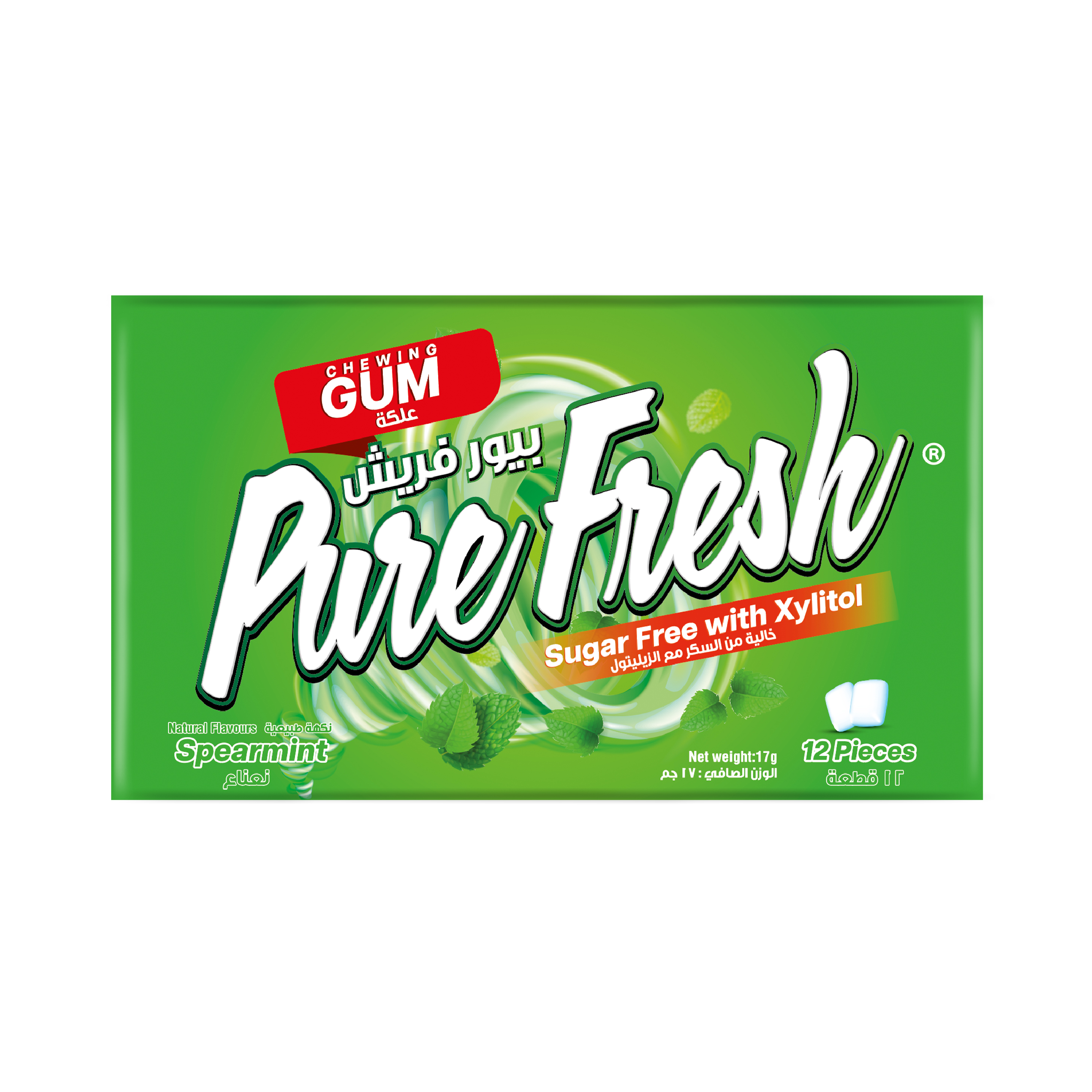 Pure Fresh Sugar Free Xylitol Gum Spearmint, Aspartame Free and Gluten Free, 12s