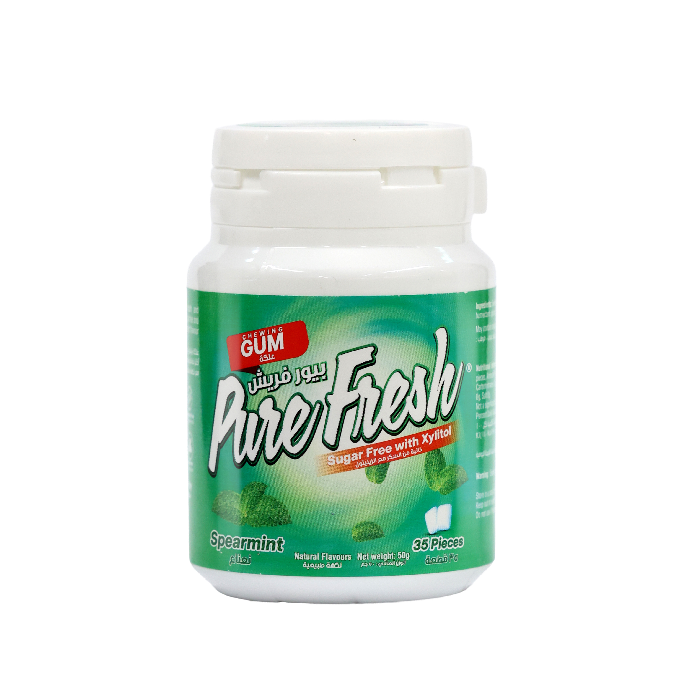 Pure Fresh Sugar Free Xylitol Gum Spearmint 35s combines refreshing spearmint flavor with tooth-friendly benefits. Sweetened with xylitol, a natural sugar alcohol derived from fruits, vegetables, and birch trees, this gum is low-calorie, sugar-free, and gentle on teeth.