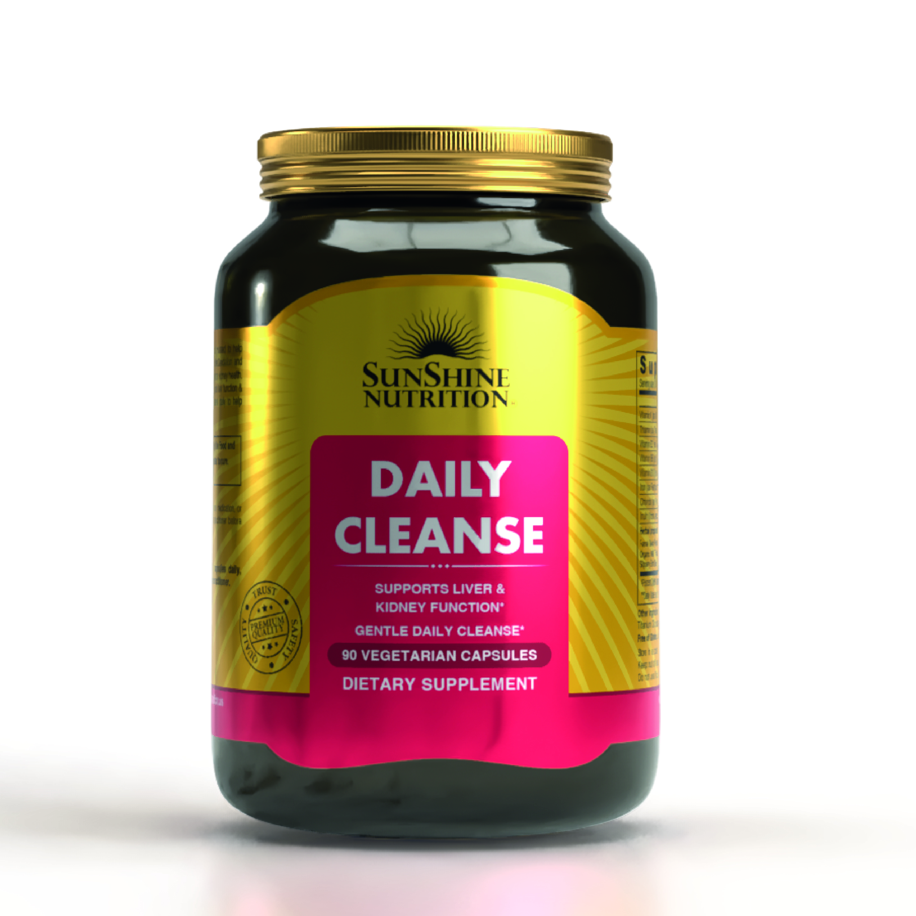 Sunshine Nutrition Daily Cleanse Capsules are a herbal detox supplement designed to support the body'snatural detoxification processes and promote digestive health. The Daily Cleanse Capsule is a gentle yet effective formulation designed to support the body's natural detoxification process. Enriched with natural fibers, herbs, and antioxidants, it helps eliminate toxins, improve digestion, and promote regularity- keeping your liver, kidneys, and colon functioning optimally.
