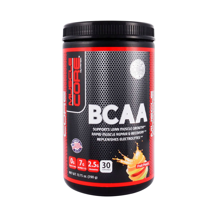 Muscle Core BCAA Fruit Punch Formula for Muscle Recovery and Endurance, 30 Servings