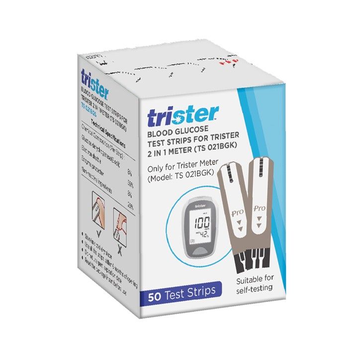 Trister Blood Glucose Meter with 2 x 50 Test Strips - Easy to Use, Fast Results in 11 Seconds